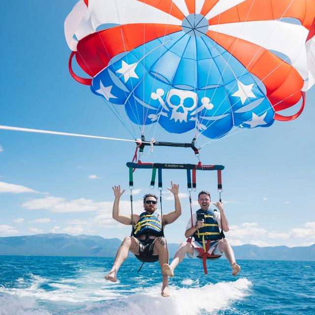 Get airborne over the country's largest alpine lake with a parasailing tour. Experience the freedom of flying and let your spirits - and yourself! - soar a few hundred feet over the crystal clear Tahoe waters. Whether you're craving an adrenaline trip or smooth sailing away from the crowds, a North Tahoe Watersports parasailing adventure may be right up your alley. Each tour lasts about an hour, with 8-10 minutes of flight time. Pack your sunscreen and smile for this bucket-list experience.