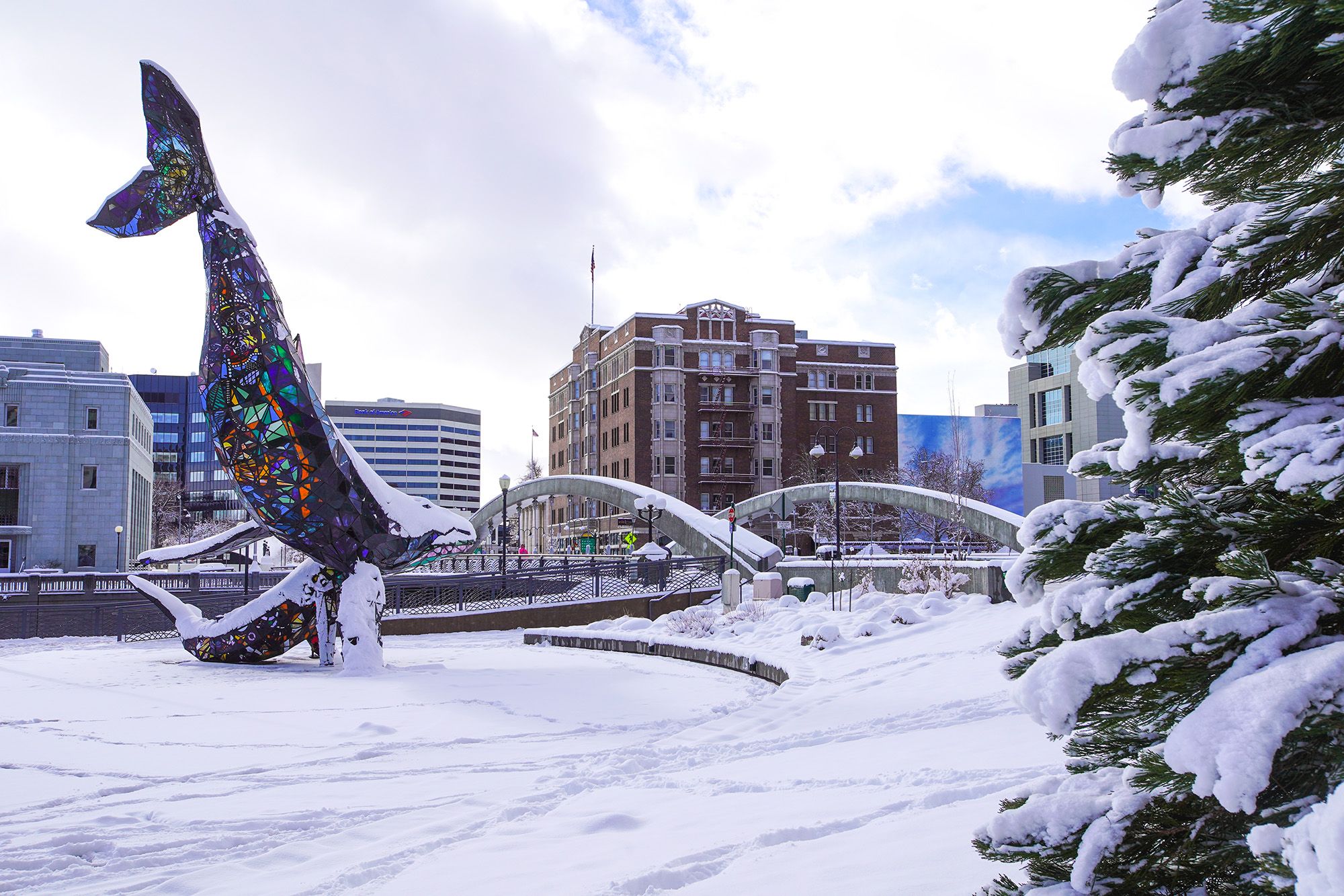 Capture a perfect shot under the iconic Reno Arch located next to the Whitney Peak Hotel. Reno Arch is the perfect photo op of this iconic historic landmark. The combination of city lights and fresh snow makes for a stunning image backdrop. Pro tip: get up early after fresh snowfall for quiet streets and bluebird skies, or stay up late to capture the neon lights.